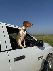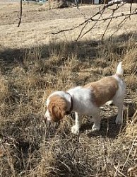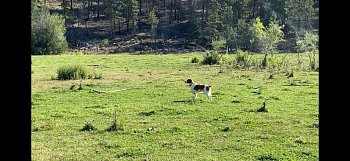 ![]() Owned by Leslie Andreas | Whelped: September 20, 2023 Harley is sired by NGDC/NAGDC/NWGDC/GFC/GAFC/FC/AFC Magnum High Velocity out of Ch. Kinwashkly French Blaze Harley went to his first field trial May 3rd at the Montana Brittany Club spring walking trial. At seven months old he placed 3rd in the Open derby with many finds. He also continued his bird finding spree in the puppy, placing 4th. At his first Canadian trial, Harley placed third in the Open Puppy, having a fun time hunting hard. Harley earned his first show point in August with a best of breed at the Edmonton Kennel Club show. Harley was 3rd in the Open Puppy stake at the Northern Alberta Pointing Dog Club in September. The second day of the trial, Harley won the Open Derby with a good race and a beautiful find. He added another point to his show championship by going Winner's Dog at the Medicine Hat Kennel Club show in October. Back in the show ring in April, 2025, Harley went Winner's dog three days in a row to add 3 more points to his show championship. The judges were Delvina Beaulac, Patricia Lanctot, and Corinne Walker. Harley made a lot of friends outside the ring, loving all kids who came his way. At the Wascana Dog Club shows in July, Harley finished his championship. He was handled by Peggy Mignon in the first four shows, going Winner's Dog each day. The last two shows, I showed him. He was Best of Winners both shows. Harley got dropped off on his way home from the shows to spend the rest of the summer training with Sheldon Rogers. He will be happy to know that he can concentrate on field work from now on. Harley won the Open Derby with great bird work at the Brittany Spaniel Club of Canada, September 14, handled by Sheldon Rogers. |